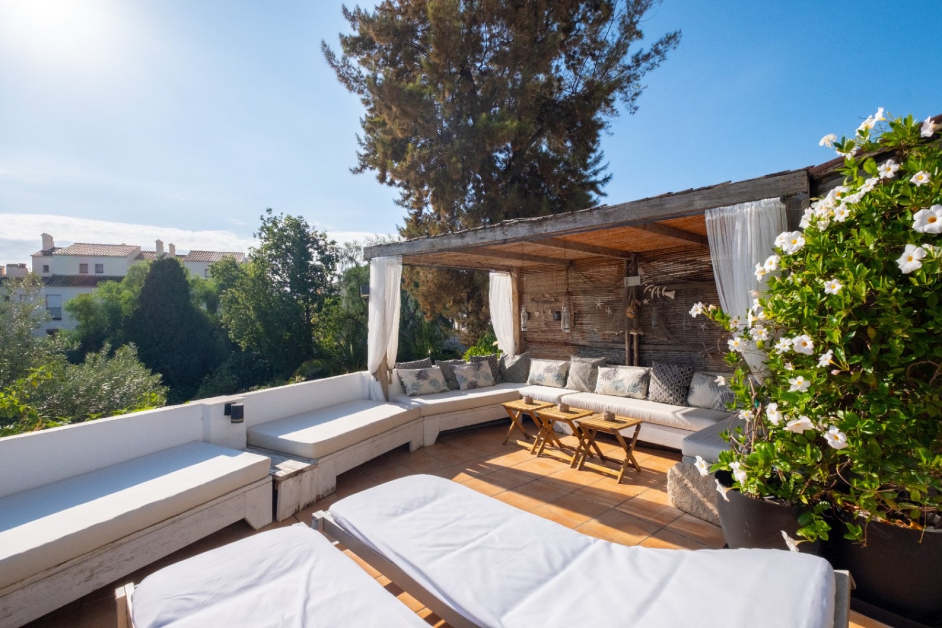 En la planta baja se encuentra una cocina americana que se integra a un amplio comedor . El salón comedor, en concepto abierto, da paso a una terraza impresionante, con un luminoso dormitorio con armario empotrado y un baño completo, también cuenta con una zona chill-out cubierta y una cocina exterior.