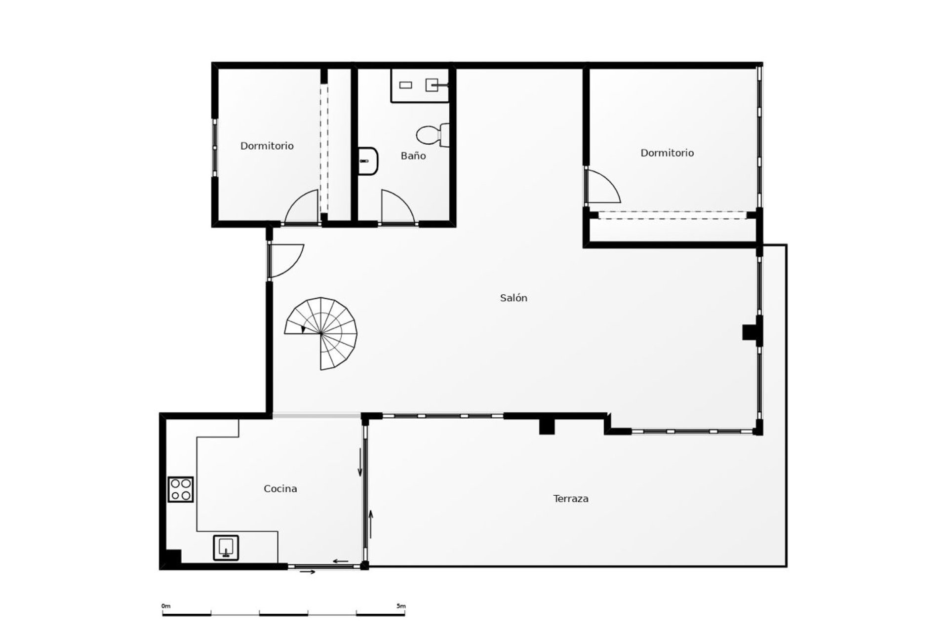 Distribuido en dos niveles, el apartamento ofrece en su planta principal un espacioso salón-comedor, cocina americana de diseño, dos dormitorios y acceso directo a la terraza. A través de una elegante escalera de madera natural se accede a la planta superior tipo loft, donde se ubican dos estancias abiertas que pueden destinarse a dormitorios, despacho o zona de ocio, además de un segundo cuarto de baño.