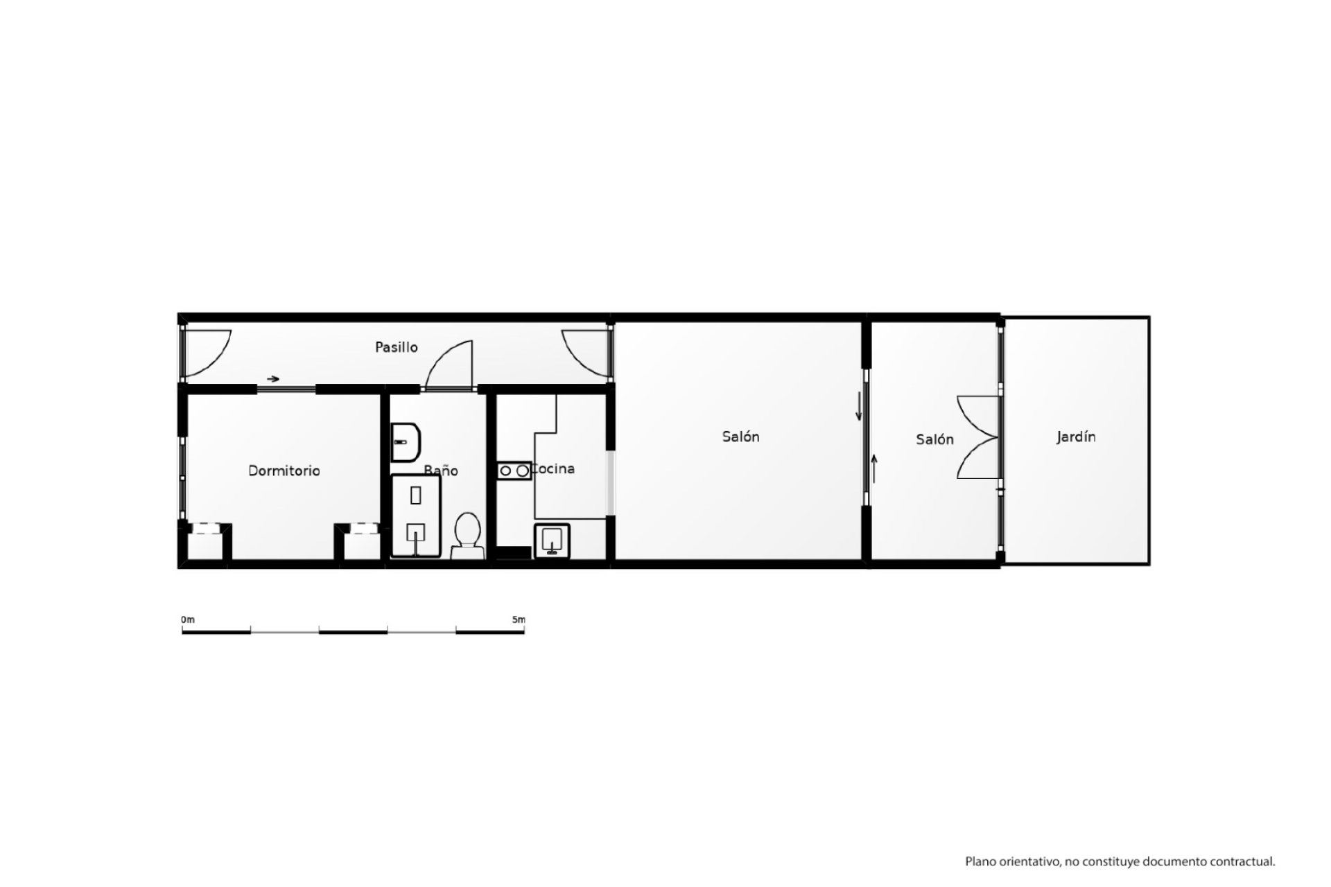 La vivienda cuenta con un dormitorio, un baño completo con ducha, cocina equipada y un acogedor salón comedor, además de dos terrazas que aportan amplitud y comodidad. Está equipada con aire acondicionado doble inverter, ventanas de PVC con doble acristalamiento y se entrega amueblada, a excepción de los objetos personales.