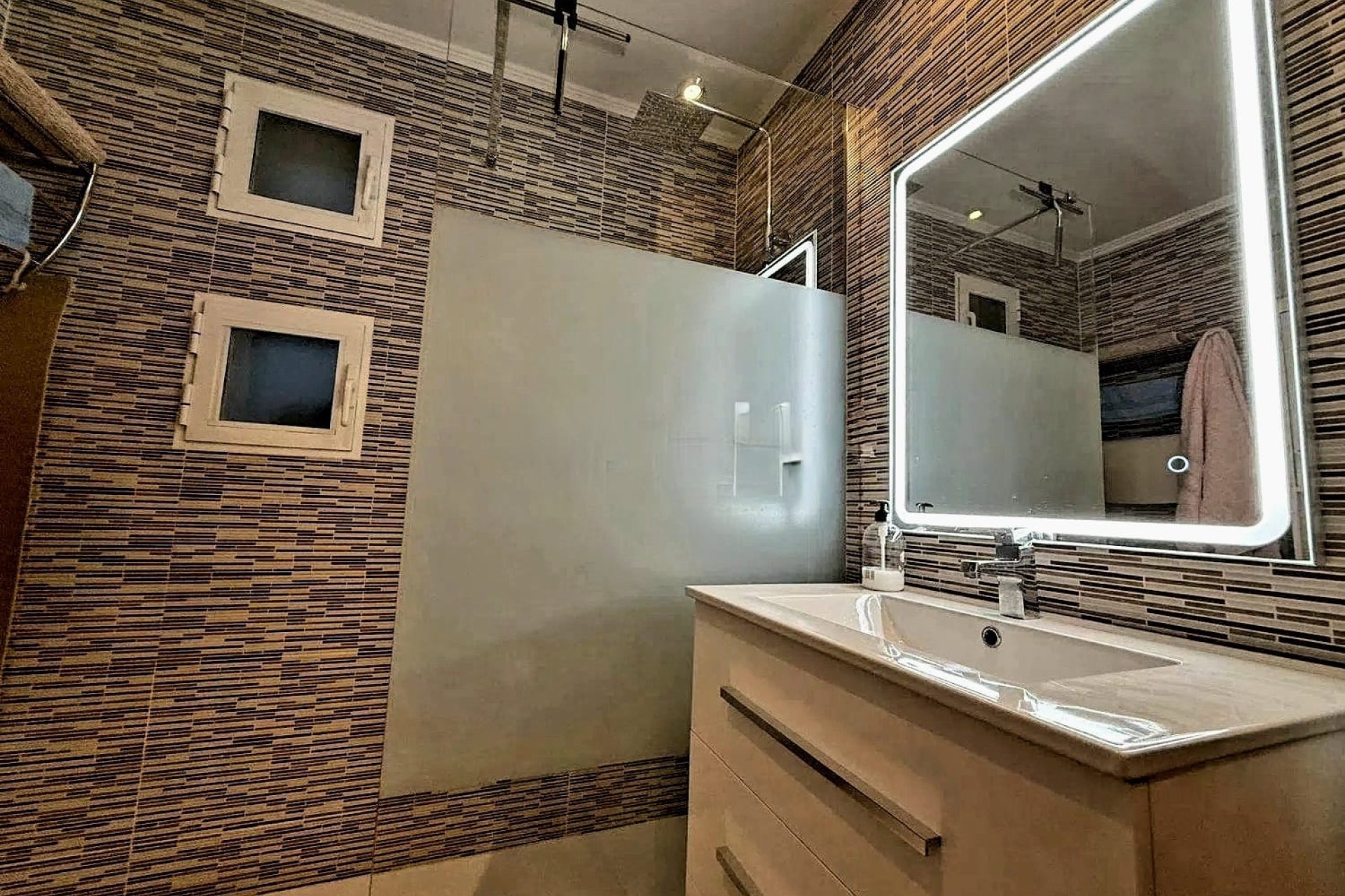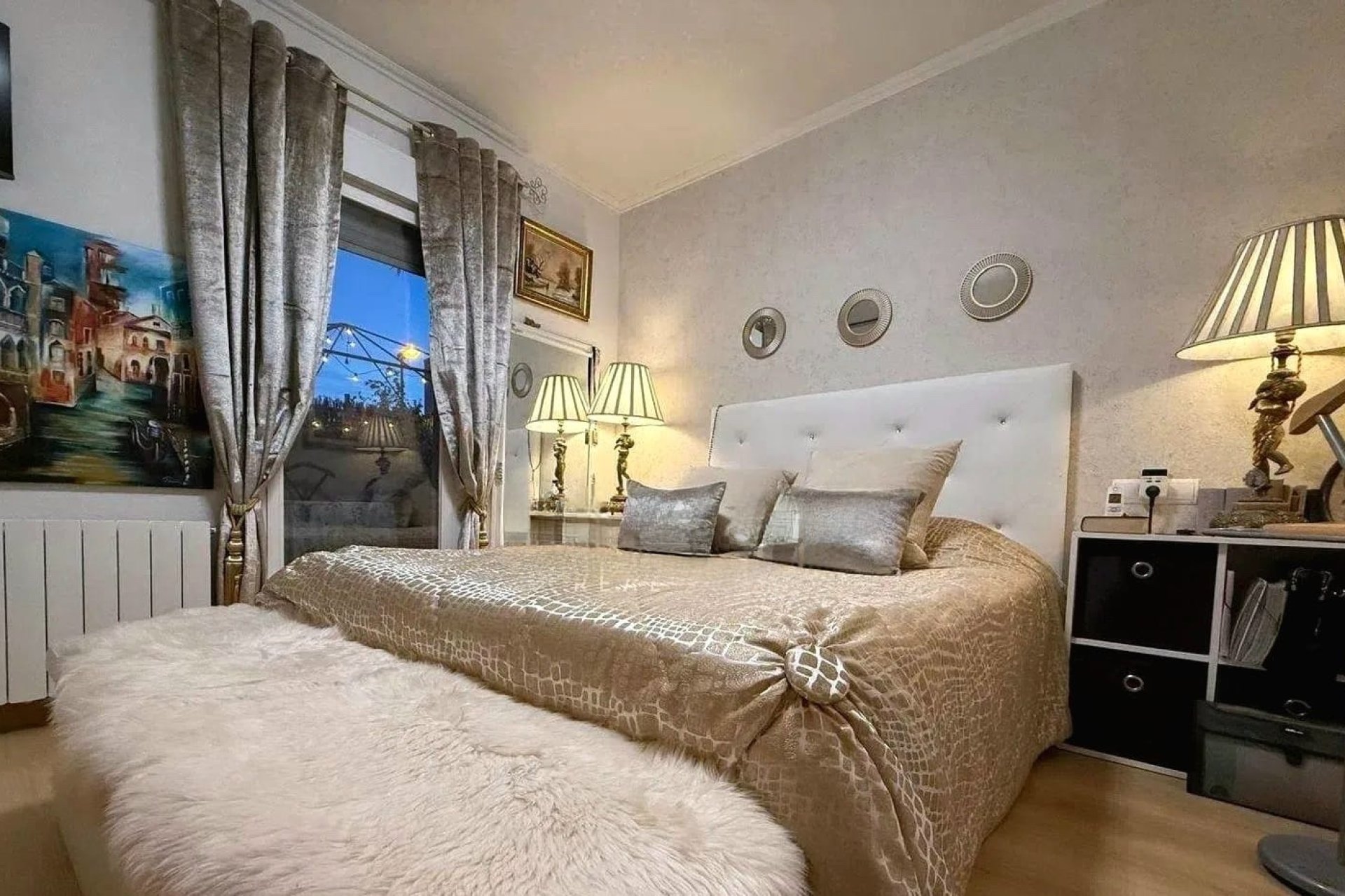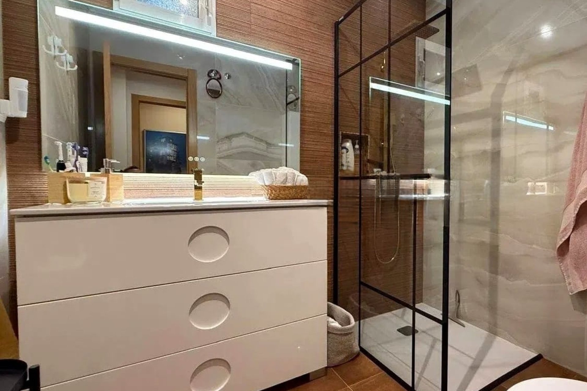 La vivienda dispone de tres dormitorios de generosas dimensiones, todos con armarios empotrados y abundante iluminación natural. Cuenta con dos baños renovados con acabados actuales y elegantes, uno de ellos integrado en el dormitorio principal para mayor privacidad y confort.