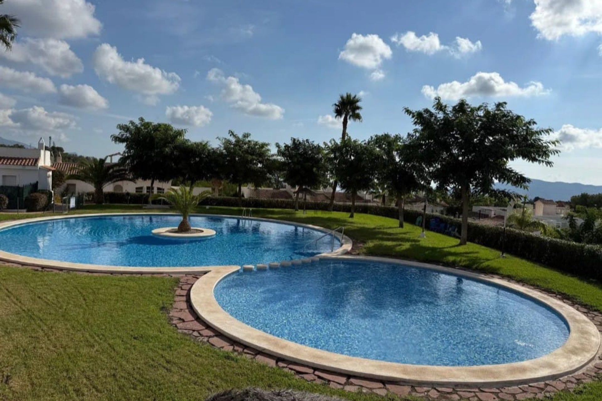 La urbanización ofrece un entorno tranquilo y familiar, con dos piscinas adaptadas para personas con movilidad reducida, cuidados jardines y parque infantil.