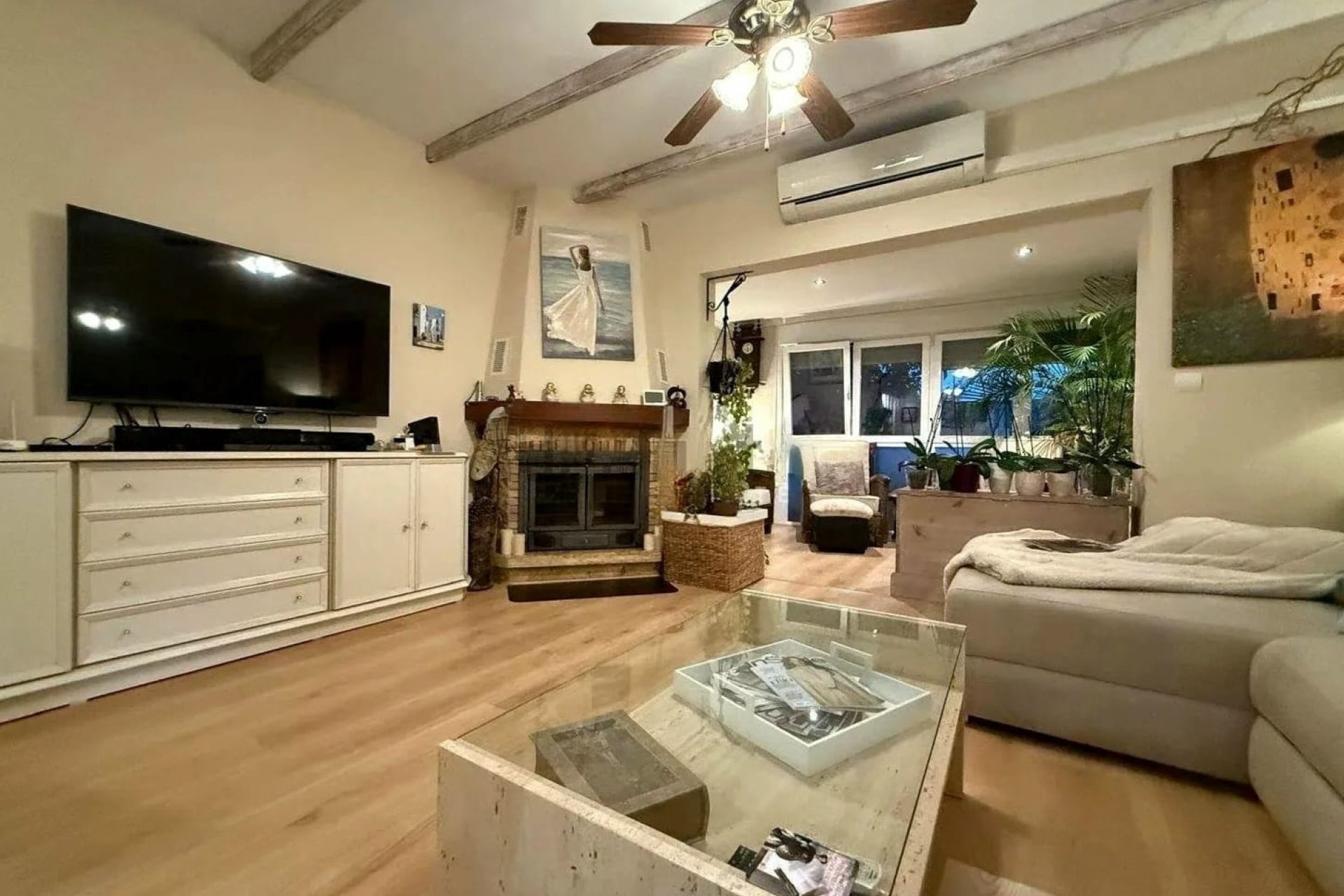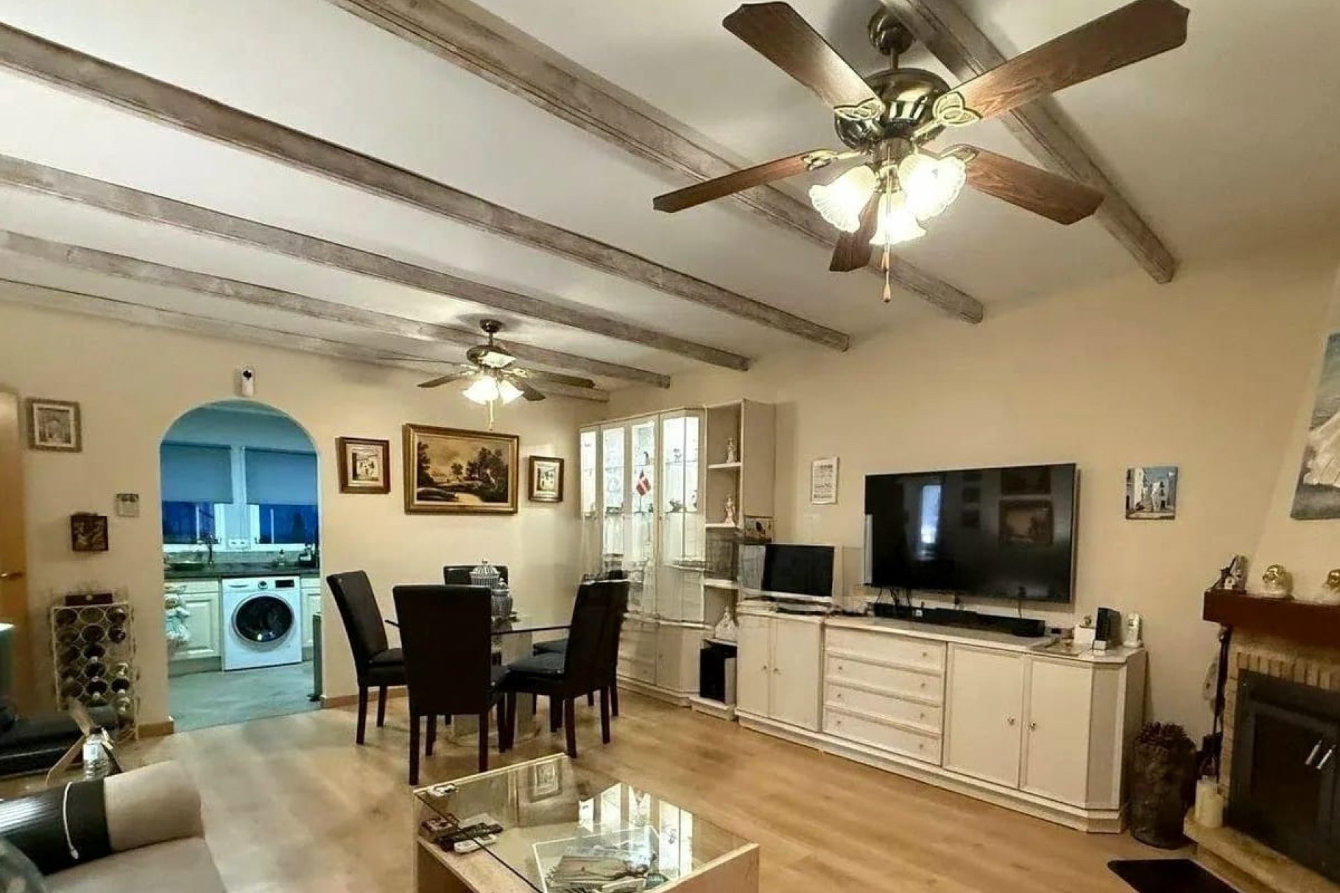 El área principal se compone de un espacioso salón-comedor con chimenea, creando un ambiente cálido y acogedor durante todo el año. La cocina, de diseño contemporáneo y excelente distribución, está equipada con electrodomésticos modernos y amplios ventanales que potencian la sensación de amplitud y luminosidad. Además, la propiedad ofrece una estancia adicional perfecta como despacho, sala de lectura o zona de relax.