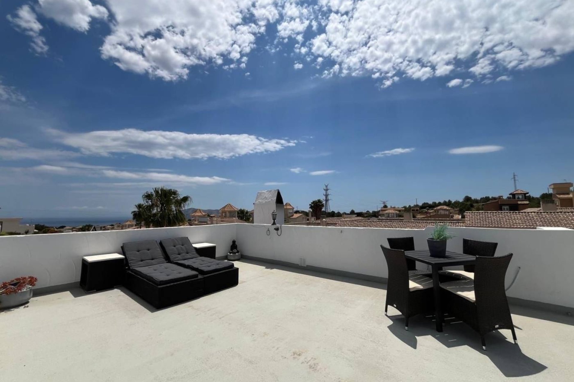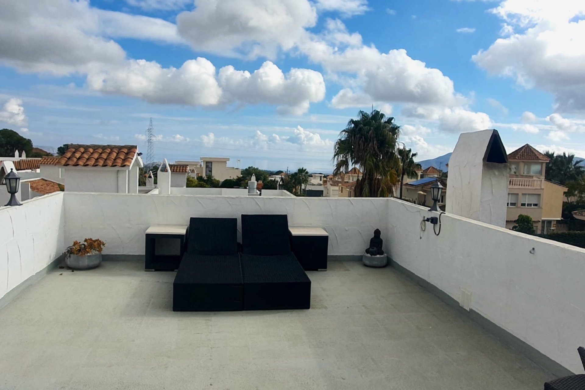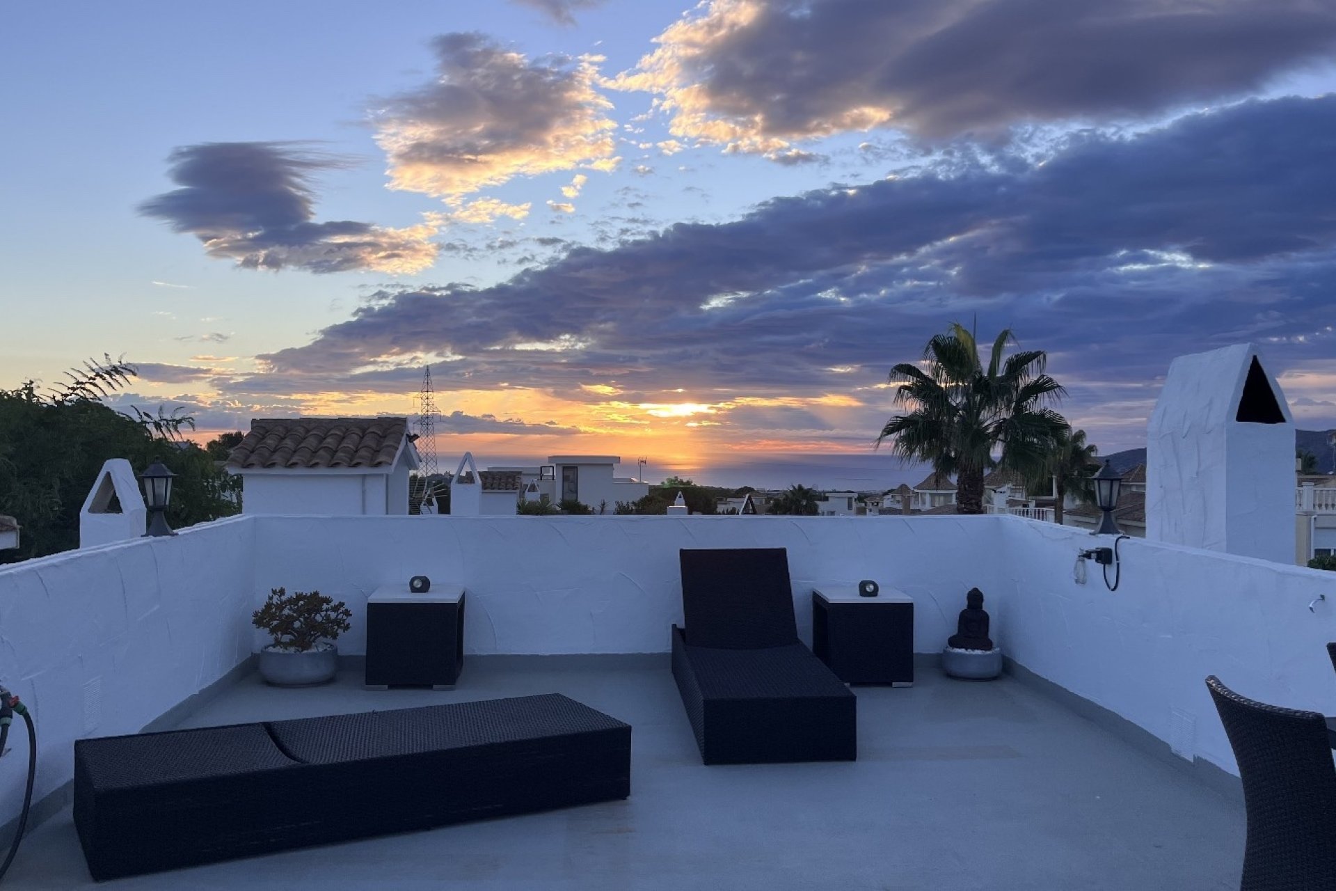 En el exterior, encontrarás un agradable jardín privado diseñado para disfrutar al máximo del clima mediterráneo, con zona de comedor al aire libre, espacio chill out y área de barbacoa. Desde aquí se accede por escaleras a un fantástico solárium, ideal para relajarse, reunirse con amigos o contemplar las maravillosas vistas al mar Mediterráneo y sus atardeceres únicos.