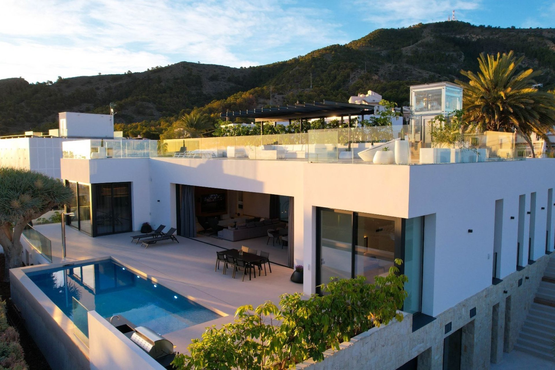 Villa Vega en El Albir es una propiedad contemporánea de calidad excepcional que ofrece una experiencia de vida inigualable con vistas panorámicas al mar y la montaña. Situada en una ubicación codiciada, esta villa se encuentra cerca de la playa, el centro del pueblo y el Parque Natural de la Sierra Helada, brindando una perfecta combinación de naturaleza y comodidad.
