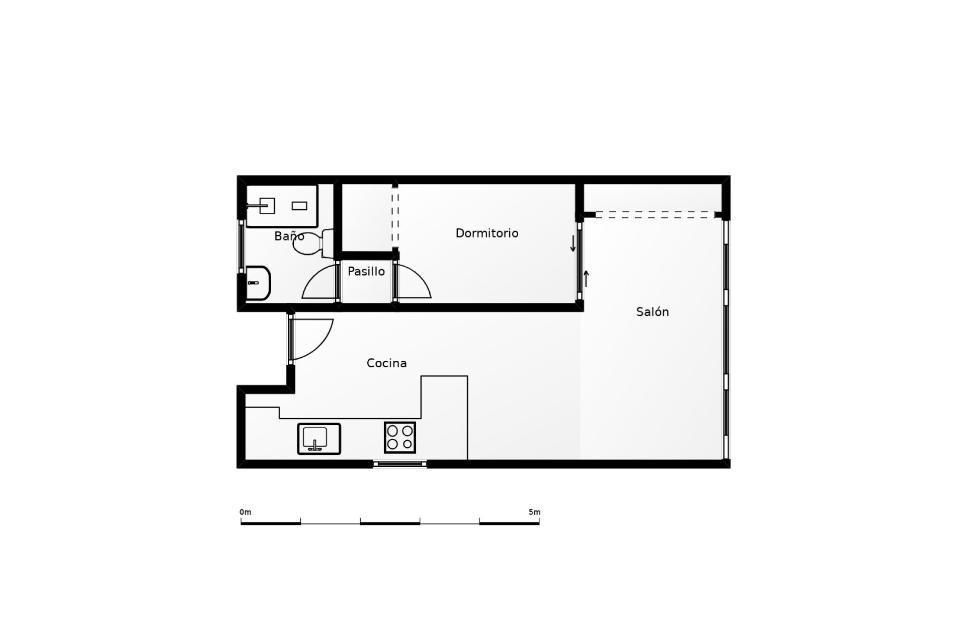 Bright apartment with a south-facing orientation and approximately 50 m² of well-used space. It features a fully equipped kitchen, a comfortable living-dining area, a bedroom with a built-in wardrobe, and a bathroom with a spacious shower.